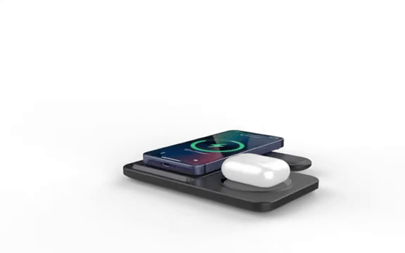 Introducing our state-of-the-art 3-in-1 wireless charging stand – an epitome of convenience combined with cutting-edge technology. Designed for the modern tech-savvy individual, this charger seamlessly powers your iPhone, iWatch, and AirPods simultaneously, eliminating the chaos of tangled cords and multiple adapters. Whether you’re at home, in the office, or on-the-go, this sleek, foldable charger ensures you stay connected without a hassle.