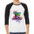 features raglan 3/4 sleeves and a modern fit that is perfect for a day