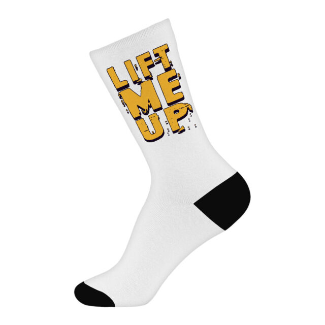 Fiber with strong elasticity, breathable and comfortable, these socks are ideal for indoor and outdoor activity. Polyester and cotton. Saying is designed and printed in California.