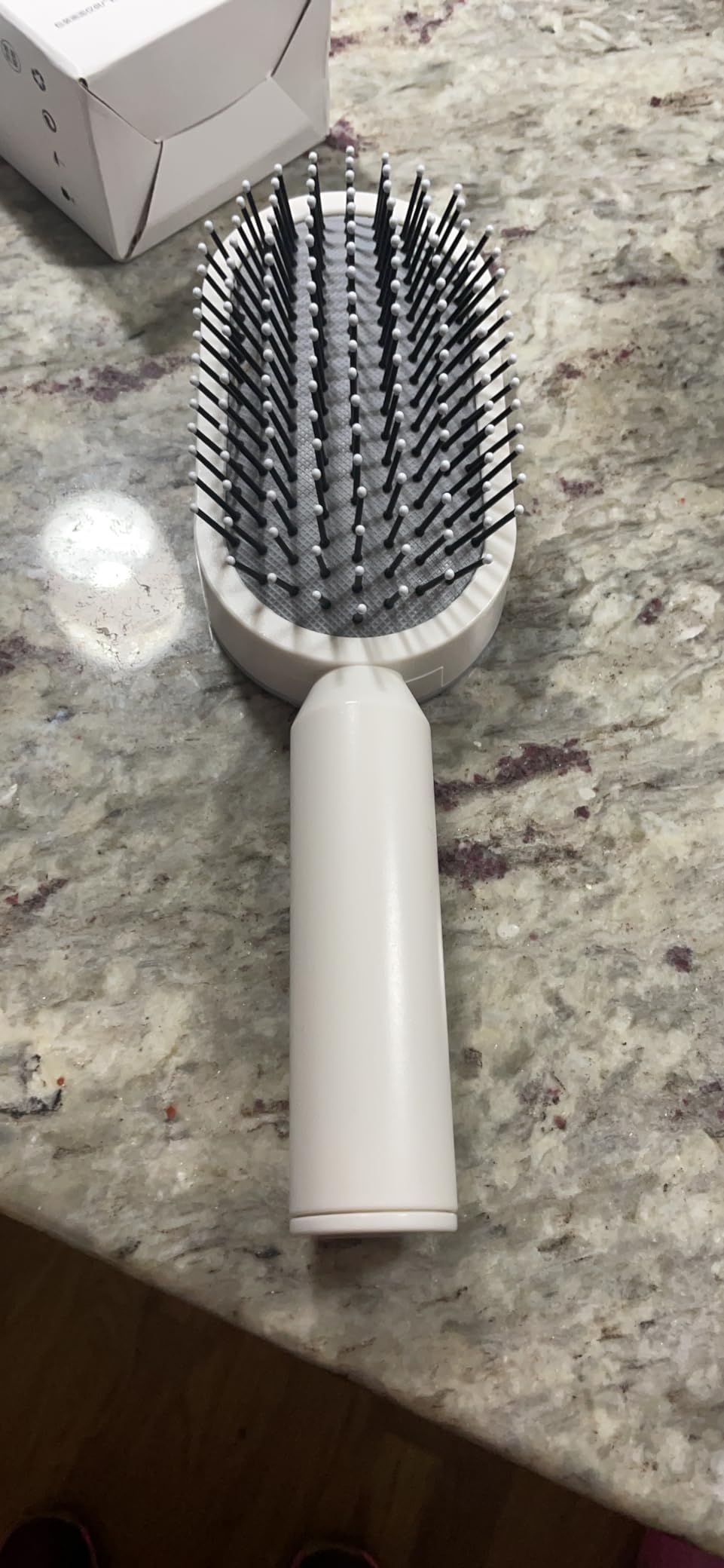 This brush has been an absolute game-changer in my daily grooming routine. It's so easy to clean with its one-key self-cleaning system - just push out trapped hair with a click! I've noticed less breakage since using this brush as it detangles without pulling at my strands.