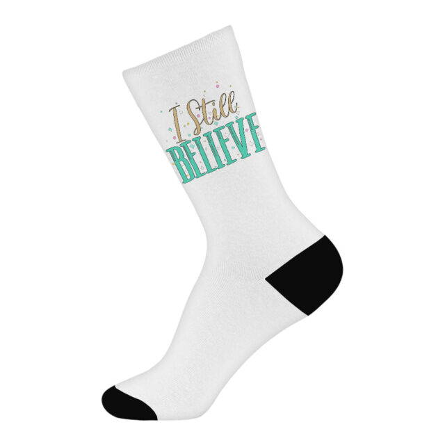 Cushioned foot bottom makes I Still Believe Socks a sure bet for everyday wear, from work, play, gym, sports, and beyond. These socks are designed to be all-season. This product is made breathable for when it’s warm but thick enough for when it’s cold during the winter.