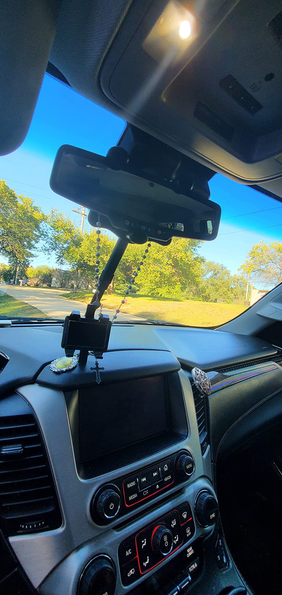 this holder attaches securely to my car's rearview mirror allowing me to focus on the road ahead - no more distractions! 🚗💨