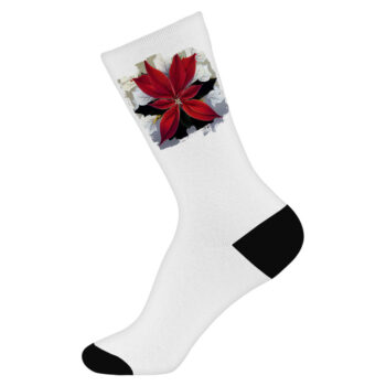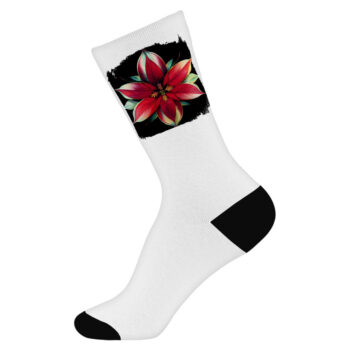 Red Flower Socks – Plant Novelty Socks – Poinsettia Crew Socks
