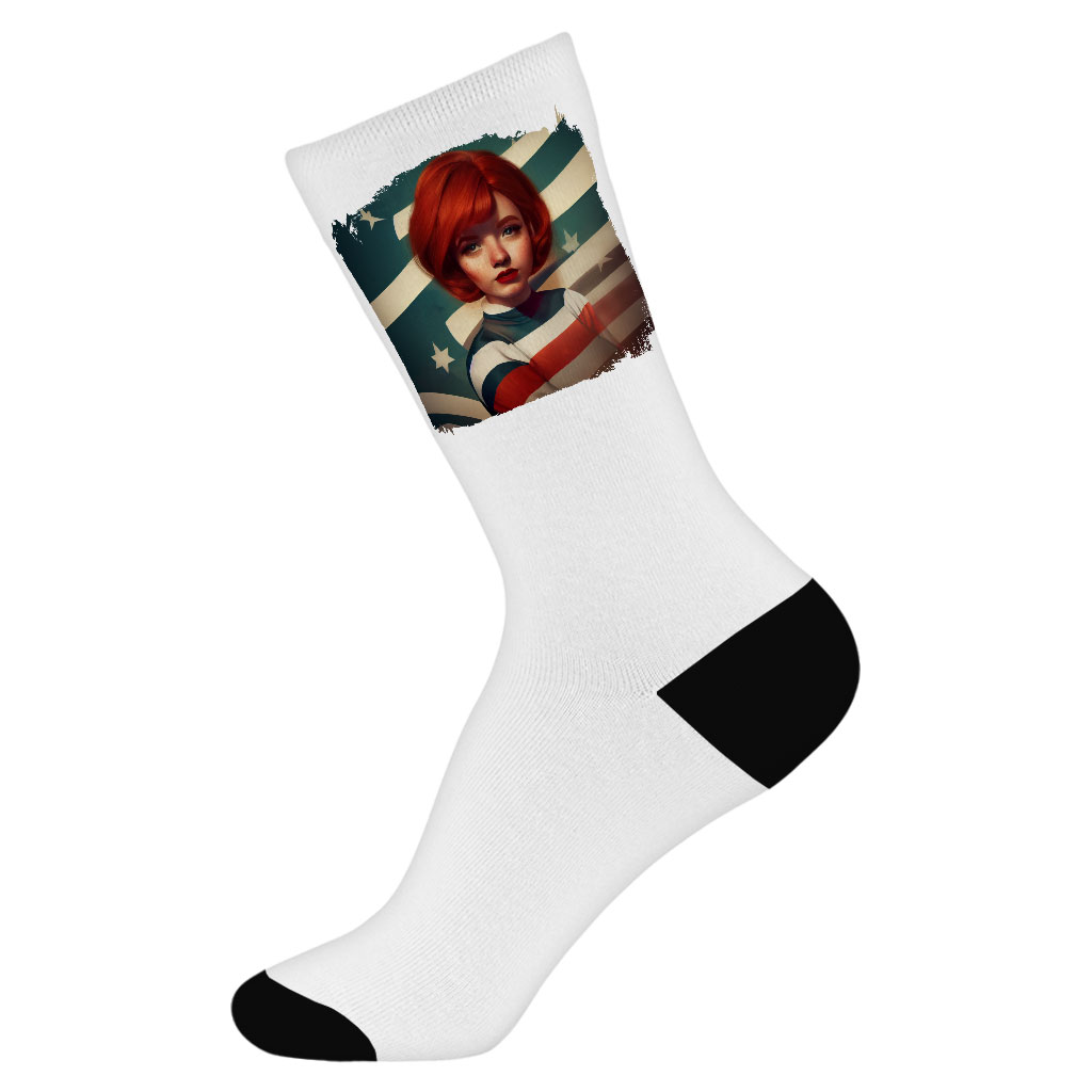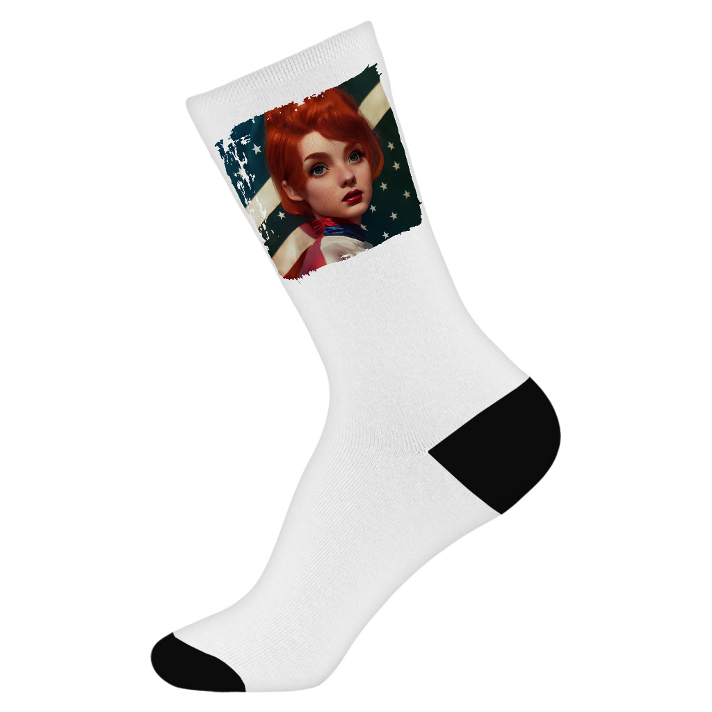 Girl With Red Hair American Flag Socks – Print Novelty Socks – Flag Crew Socks