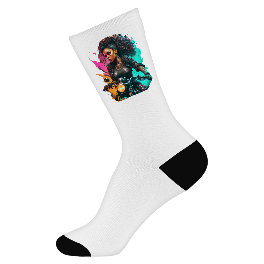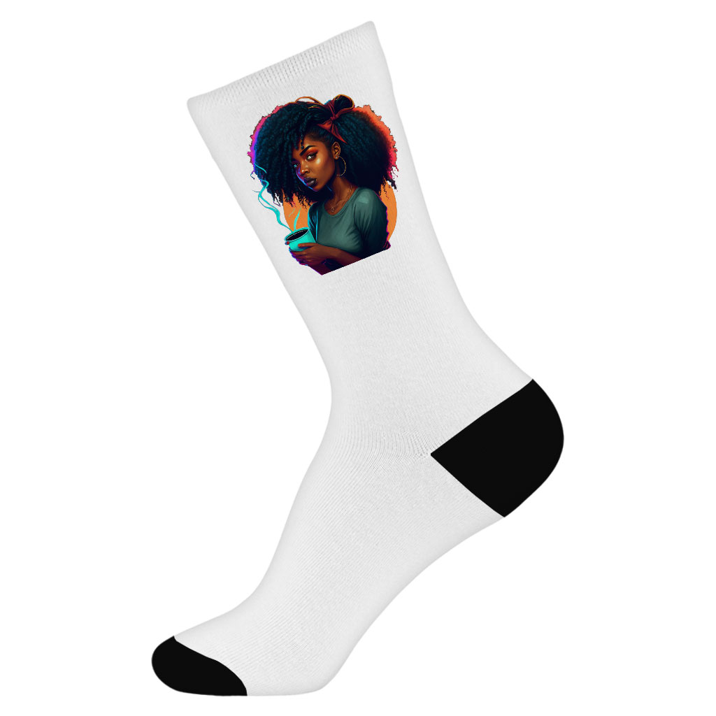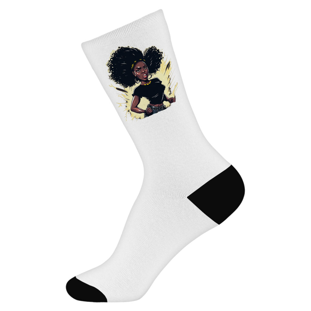 Cute Black Cartoon Girl Socks – Power Novelty Socks – Printed Crew Socks