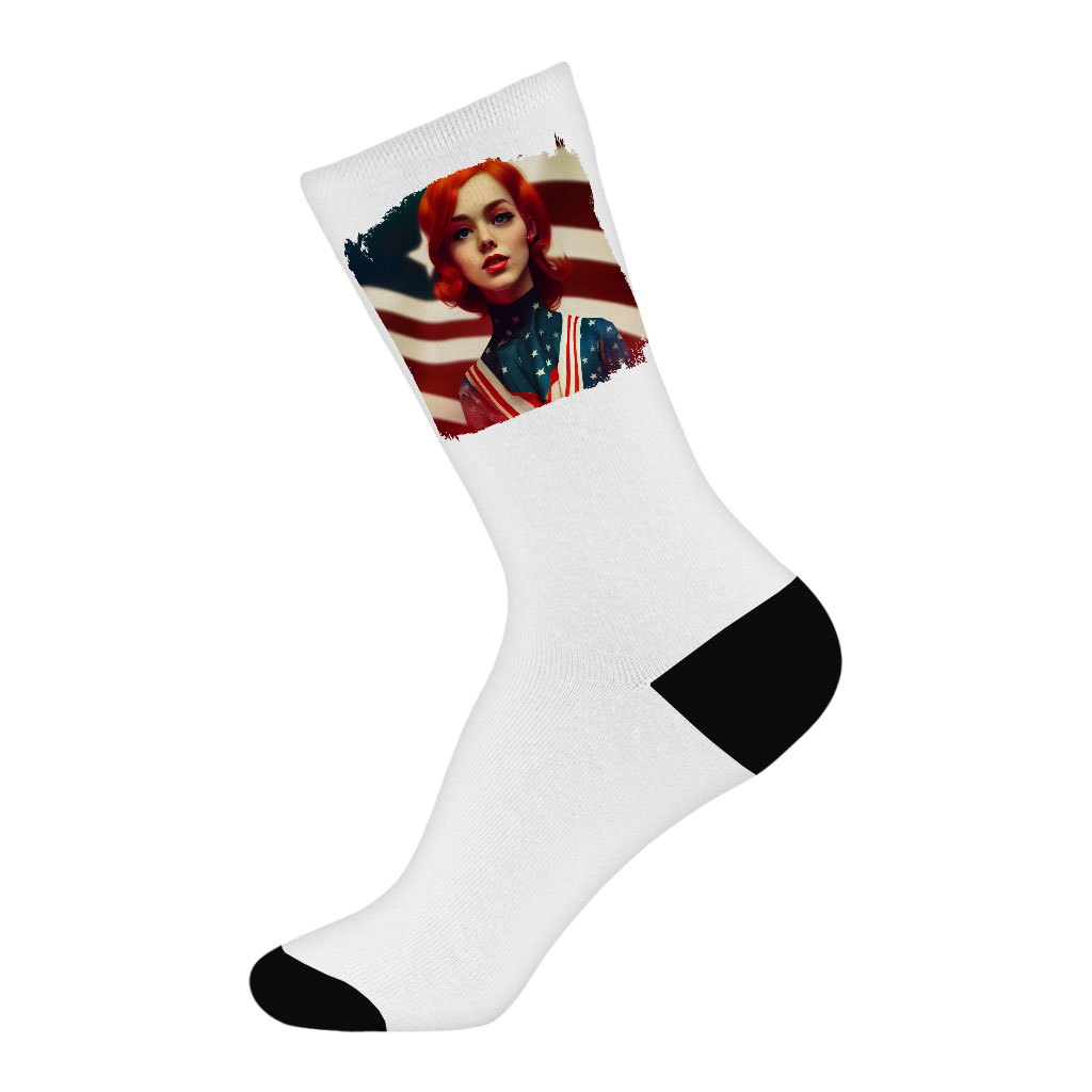 Looking for a way to add some personality to your everyday style? Check out Print Socks! With a ribbed tube and cushioned bottoms, our socks are sure to make a statement. Plus, they’re super comfortable, so you can wear them all day long. American Flag Socks are the perfect pair for you.